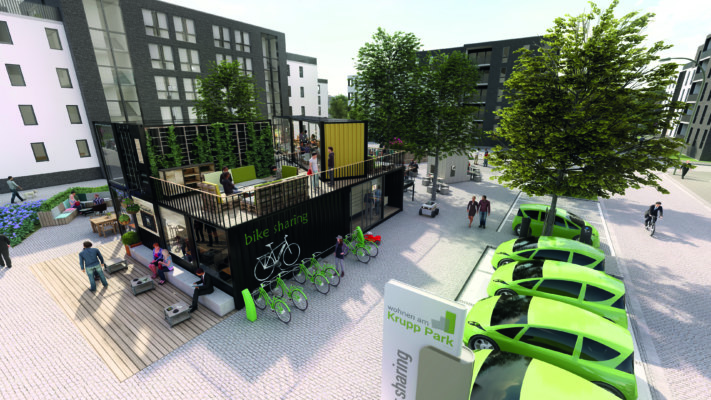 Den Bewohnern stehen Sharing-Angebote zur Verfügung für Car- und Bike-Sharing.Wohnhöfe und Grünflächen mit herausragender Gestaltung, vielfältigen Elementen und einem außergewöhnlichen Spielangebot verknüpfen das gesamte Quartier und fördern die Nähe und Verbindung der Quartiersbewohner zueinander.